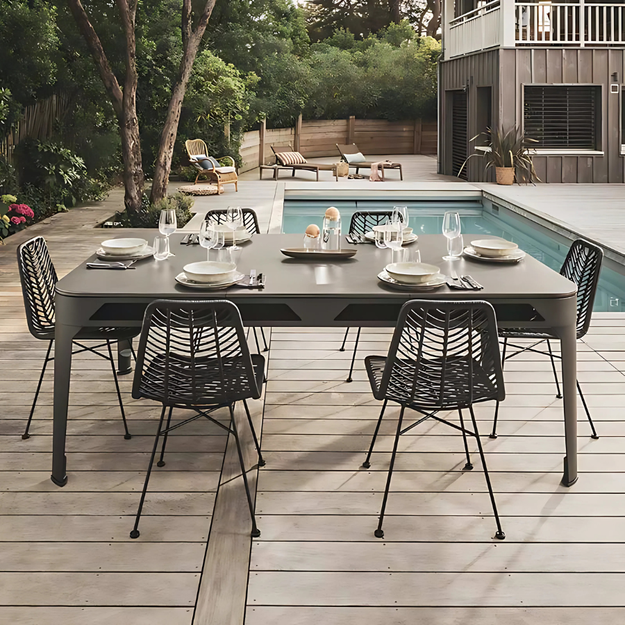Table de billard convertible Noir Hyphen Outdoor Tapis Gris Clair + housse